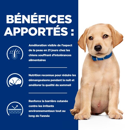 Les croquettes pour chiot Prescription Diet Derm Complete Puppy de Hill's fournissent toute la nutrition dont votre chiot a besoin. Veuillez consulter votre vétérinaire pour plus d'informations sur la façon dont nos aliments Prescription Diet peuvent aider votre chien à continuer de profiter d'une vie heureuse et active. Ces croquettes sont composées d'ingrédients délicieux et ont un goût irrésistible que votre chiot va adorer.